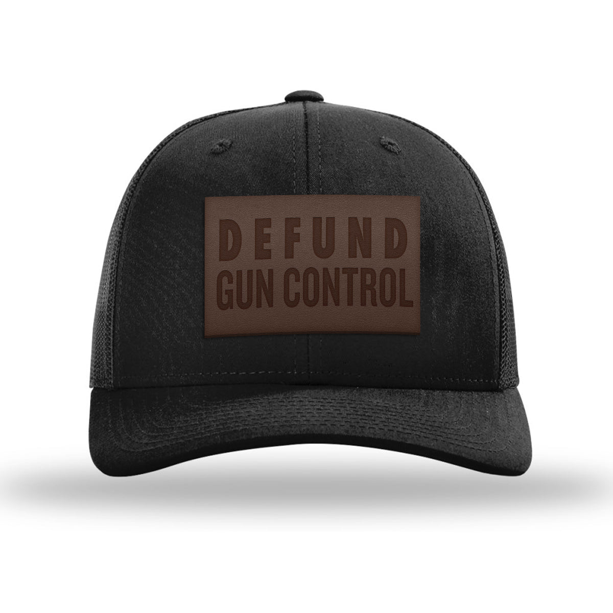 Defund Gun Control Leather Patch Trucker Hat