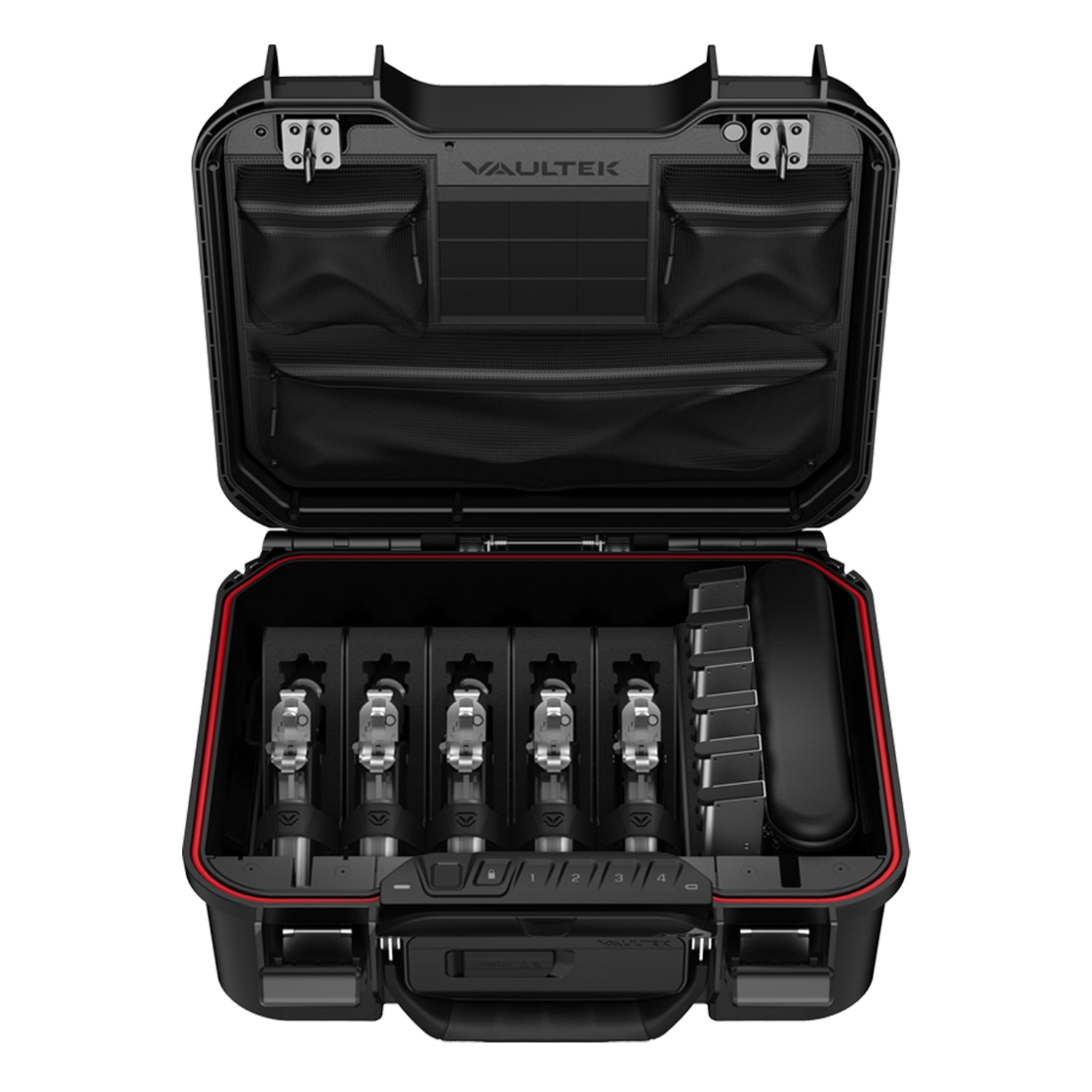 The Vaultek LifePod XT Range Edition is designed to be the ultimate range hauler, offering storage for up to five pistols, multiple spare magazines, and a built-in lid organizer to keep smaller items secure, visible, and exactly where you need them. Rugged, weather-resistant, airtight, dustproof, and equipped with Vaultek’s biometric and Smart Sense™ access technology, it’s the most advanced weatherproof firearm case on the market.